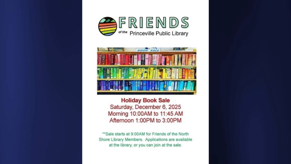 The sale will start at 9 a.m. for members of the Princeville Library Friends. The general public may shop from 10 to 11:45 a.m., and again from 1 to 3 p.m.