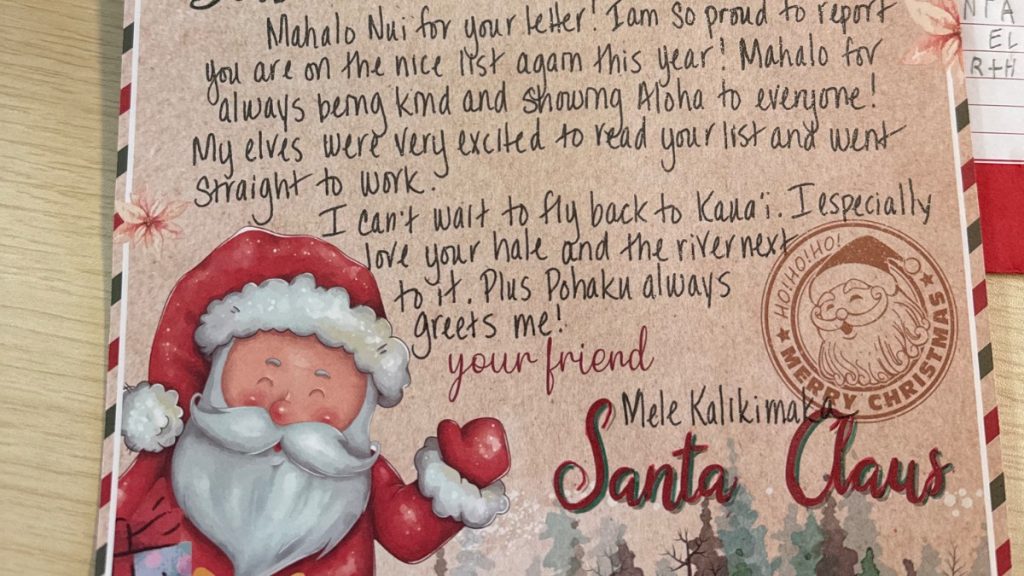 “What started as a simple idea has become something truly magical,” she said. “A place where keiki drop off their handwritten letters, full of hope, imagination and big dreams.”