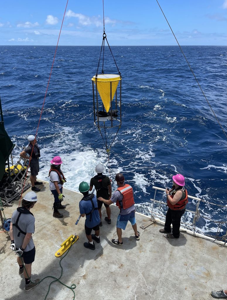 The research team deploys a sediment trap capture sinking particles. (Photo credit: R Foreman)
