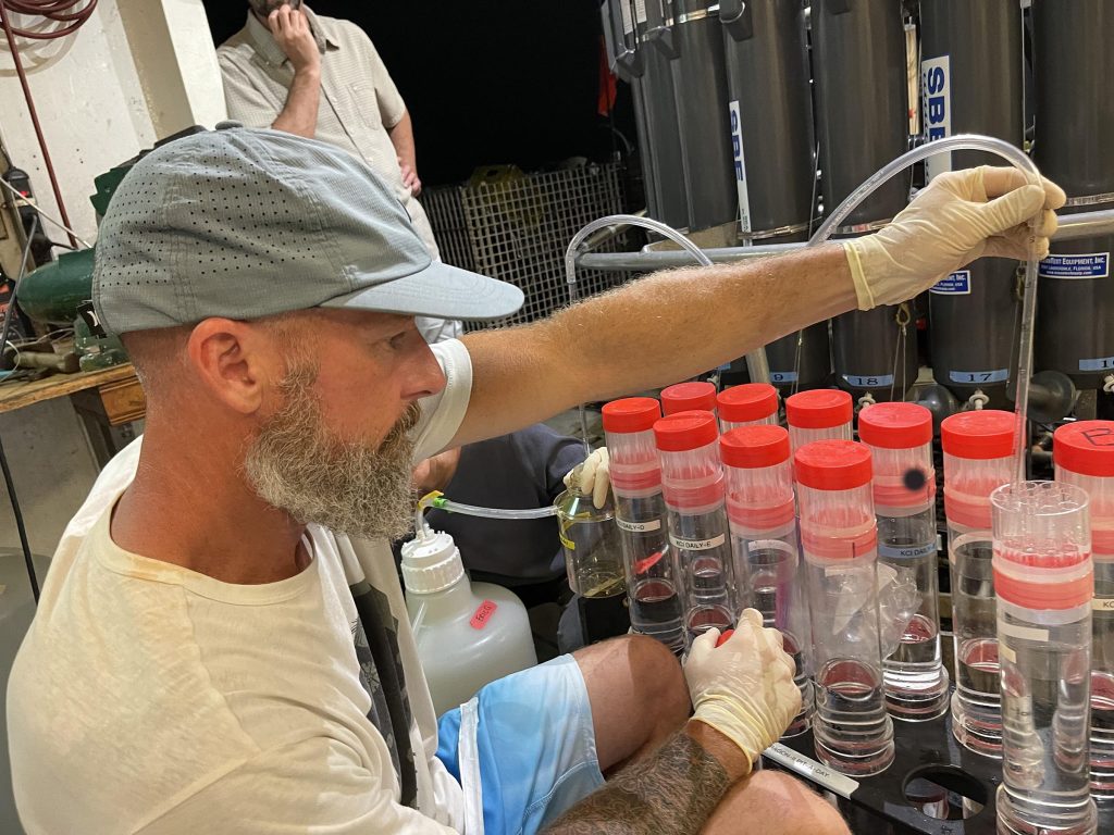 Co-author Eric Grabowski processes samples from the bloom cruise. (Photo credit: R Foreman)