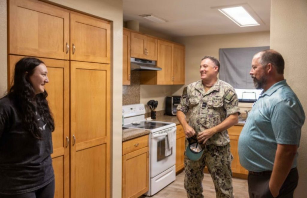 He spoke with enlisted sailors about their needs and met with the Pacific Missile Range Facility housing team as well as Master-at-Arms Seaman Emily Turner to check firsthand about the quality of living quarters for junior enlisted personnel at the Barking Sands installation.