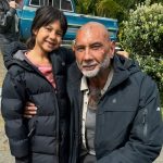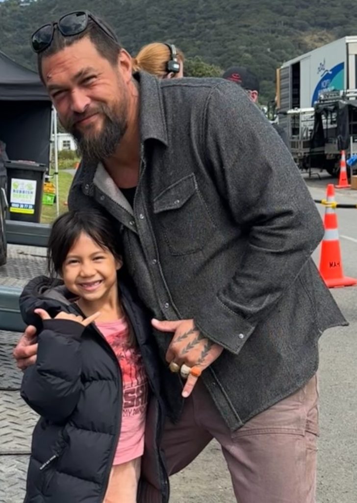 • Maia Kealoha poses with Jason Momoa for a photo on the set of “The Wrecking Crew.” (Photo Courtesy: Reel News Hawai‘i)