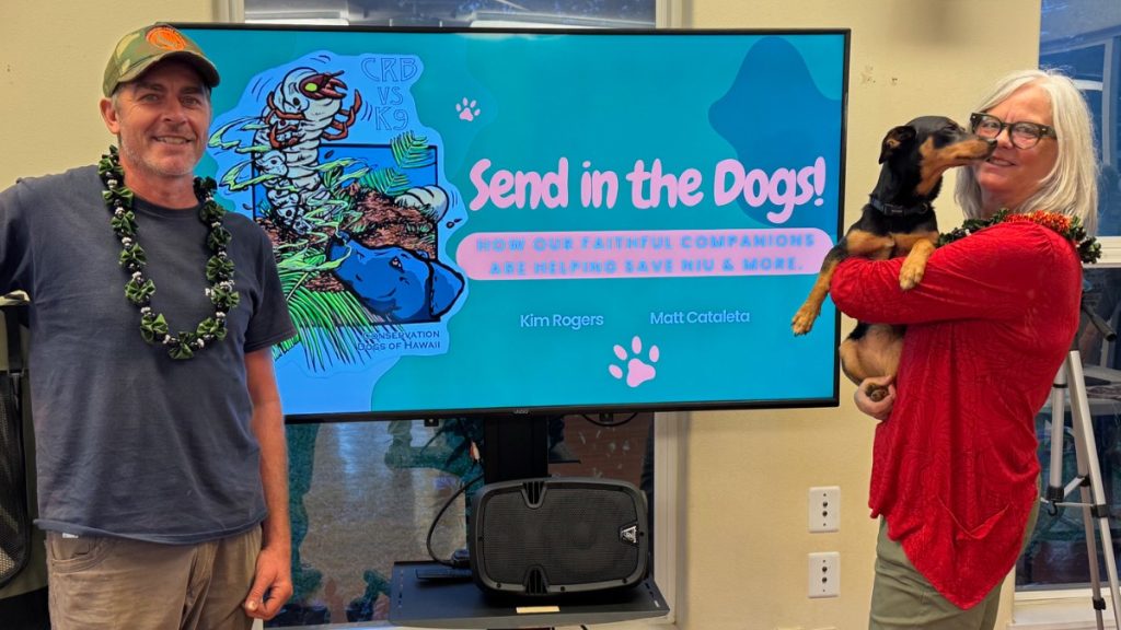Matt Cataleta and Kim S. Rogers of Conservation Dogs Hawaiʻi presented “Send in the Dogs: How Our Faithful Companions Are Helping Save Niu and More” during the latest installment of the Princeville Moʻolelo free lecture series.