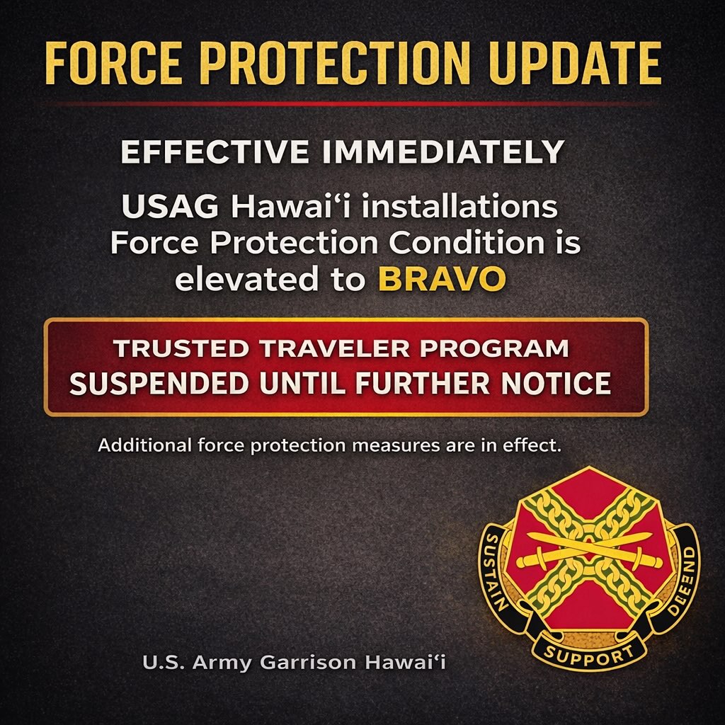 “This increased security measure follows a global trend of preparedness and does not reflect any direct threat or immediate danger to [Pacific Missile Range Facility] or the Hawaiian Islands,” said the U.S. Navy installation in a Feb. 28 Facebook post. “As always, adhere to directions given by security personnel.”