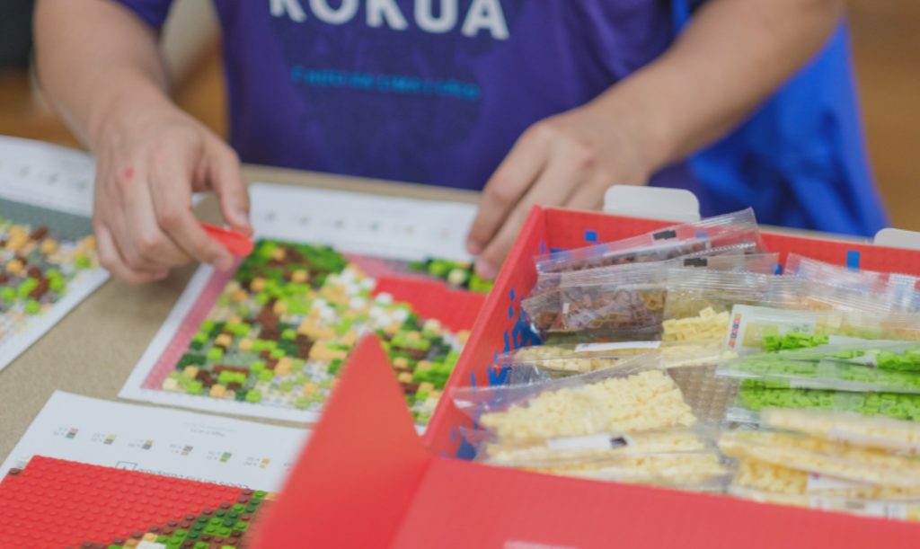 One of the exhibit highlights is a Middle School Mosaic Gallery, representing 50 schools throughout Hawaiʻi with LEGO-like brick creations built by students.