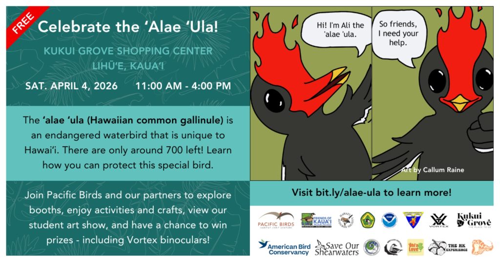 Pacific Birds and other sponsors will share local art, moʻolelo and fun facts about the ʻalae ʻula and how people can help protect it.