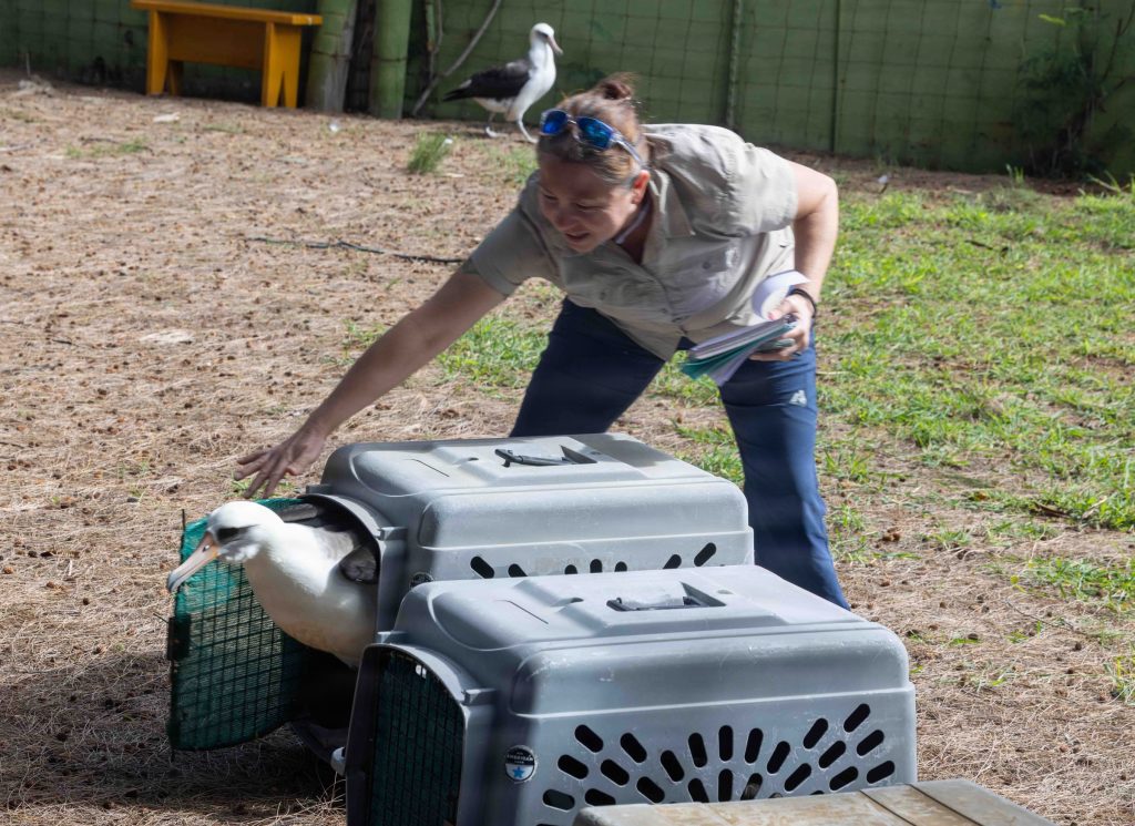 “When we release the albatross at a partner site, we stick around to document the behaviors birds demonstrate at the new location,” said University of Hawai‘i biologist Yessica Carnley in the release. “It’s important we record how they react. The hope is that they will take to the colony quickly and begin mingling with the other birds.”