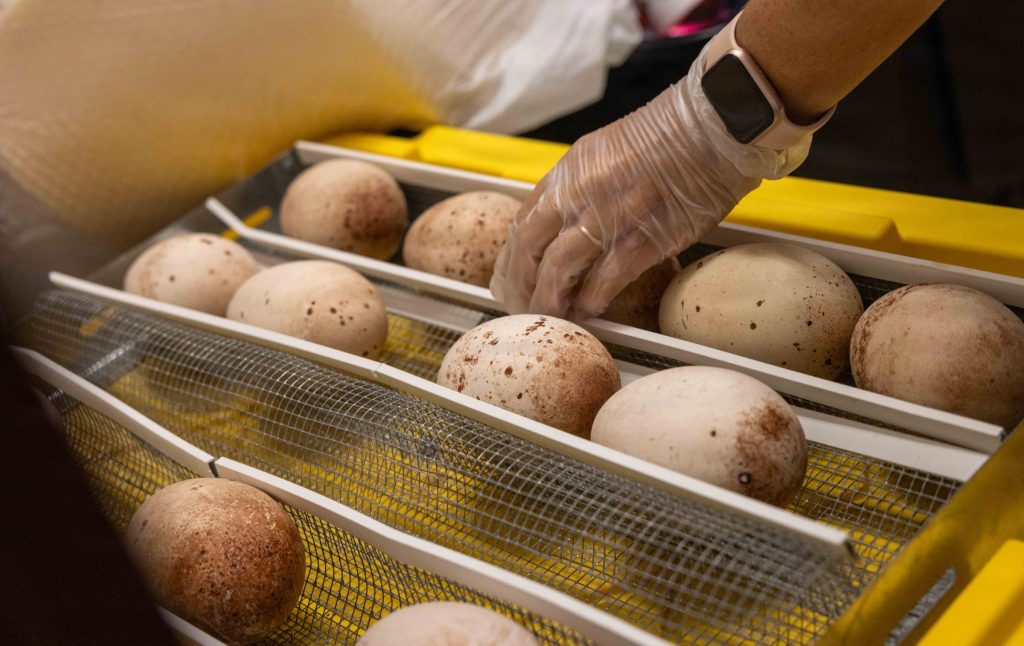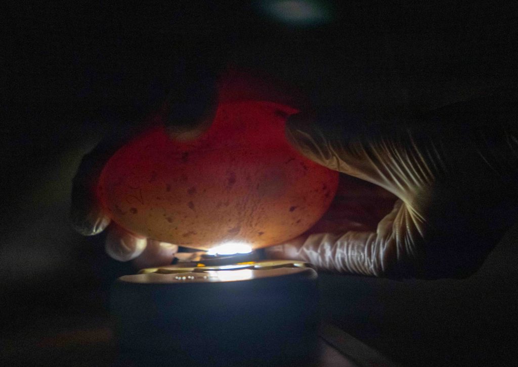 Team members check the egg’s viability during the intake process through an examination called “candling” and document any observations made for every egg collected.