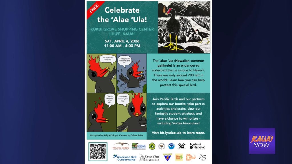 Organizers said the free event will highlight the cultural and ecological importance of the ʻalae ʻula and encourage community involvement in conservation efforts. The birds depend on healthy wetland habitats and loʻi kalo, and face ongoing threats from habitat loss and predators.