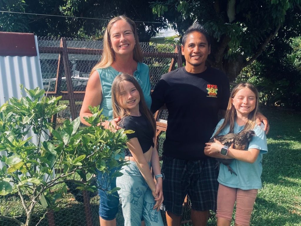 The Neros have a combined 20 years of experience with small-scale farming and permaculture. They also work with their kids to help operate their family farm, where everyone shares in the kuleana of keeping the operations going.