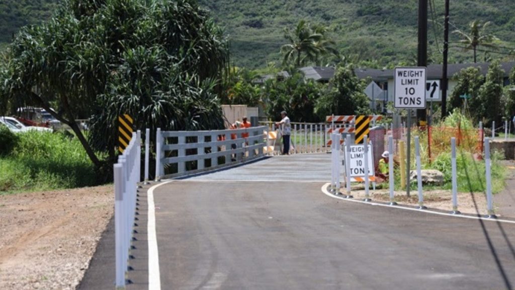The Kaua’i Department of Public Works and its contractor, Kaiwa Construction, announced that the Niumalu Bridge reopened to the public following the completion of construction of a temporary span.