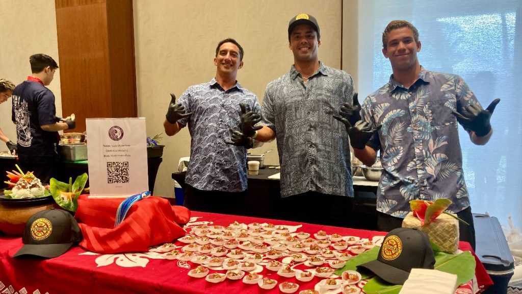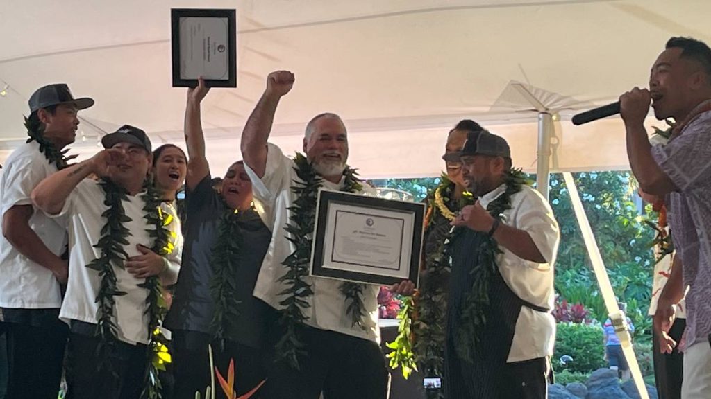 Attendees scanned QR codes positioned at each team’s table to cast votes based on taste, originality and presentation. One found it hard to imagine any group receiving low marks – but there could only be one champion in the end. That honor went to chef Don Gusman and his fellow cooks Joey Jamillarin and Hoku Keamoai of Grand Hyatt Kaua‘i Resort & Spa.