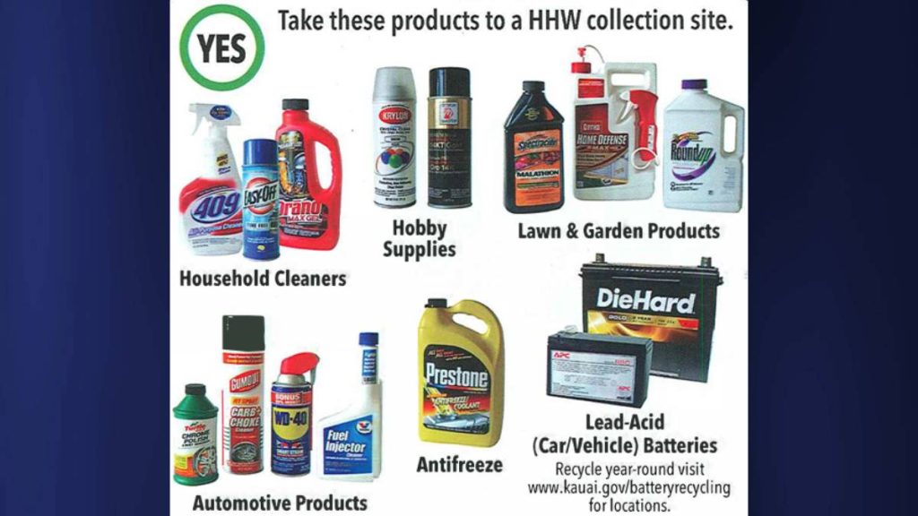 Residents of Kauaʻi can safely dispose of items such as automotive products, batteries and other household hazardous waste at designated locations.Hawaii News Hawaiʻi governor’s visit to Japan strengthens relations, signs clean energy…