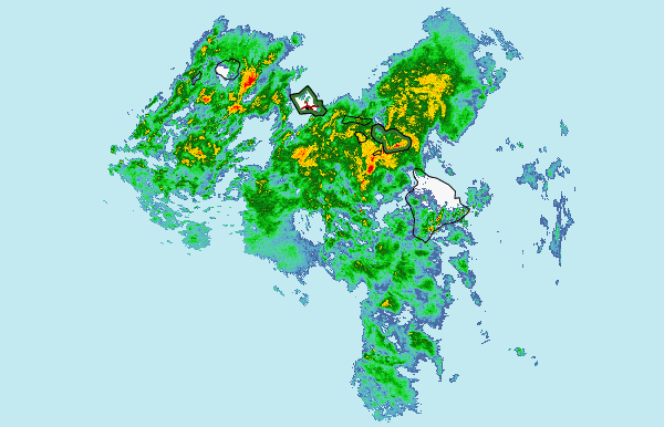 Radar indicated at 8:40 a.m. that the band of showers is still moving into Kauaʻi from the southwest; forecasters with the National Weather Service in Honolulu report the showers will continue to overspread the island for the next hour or so.