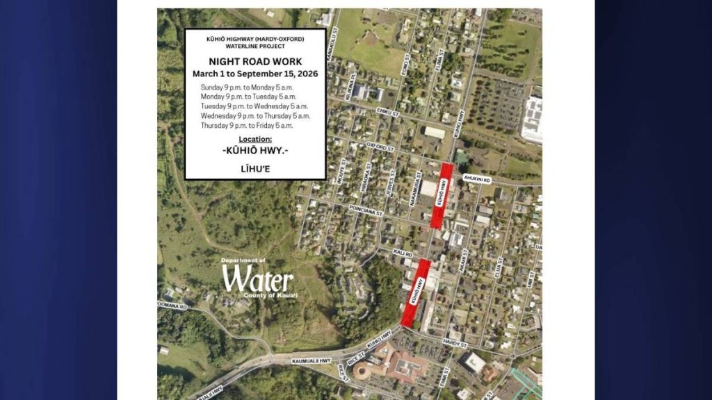 Night work continues for the Kūhiō Highway (Hardy-Oxford) Waterline Project