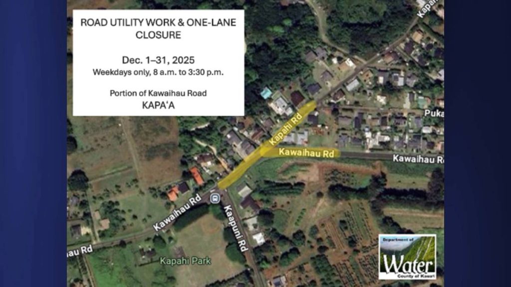 Road closure scheduled for portion of Kress Street in Līhu‘e