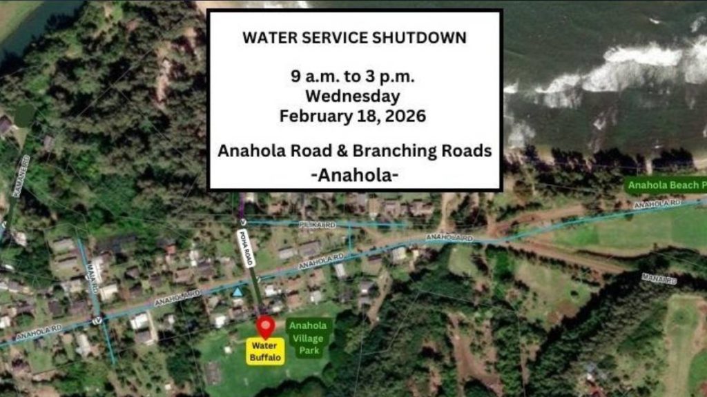 Water service shutdown scheduled for portion of Anahola Road