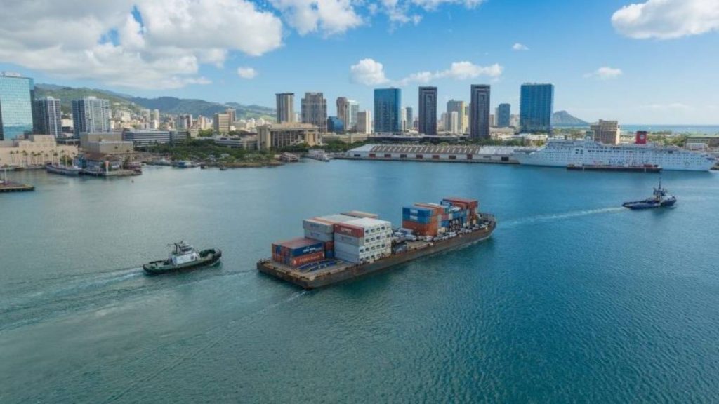 Young Brothers barge arrives at Nāwiliwili but high winds, low visibility prohibit it from entering harbor